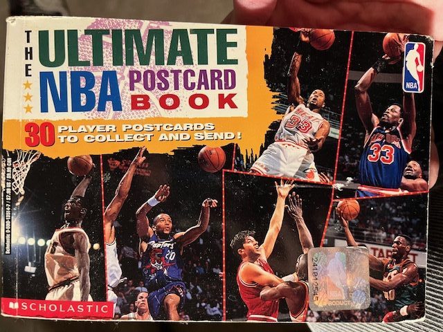 The book consisted of 30 postcards, featuring many of the NBA’s top players at the time: Toni Kukoc, Rik Smits, Chris Webber, Joe Dumars, Patrick Ewing, etc.  My writing occupied a small space on the back. Like so: